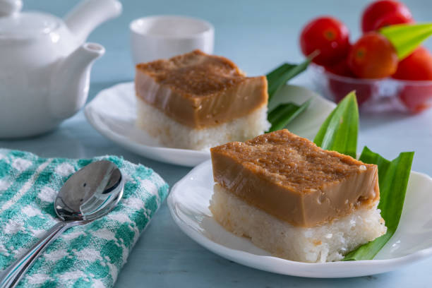- Tuangkan lapisan hijau ke loyang, kukus selama 5 menit. Lalu tambahkan lapisan putih, kukus lagi. Ulangi hingga adonan habis.